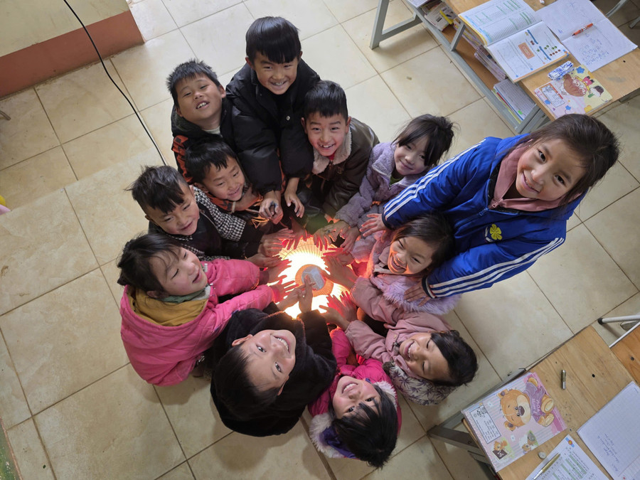 | Học sinh Sa Pa quây quần quanh đèn sưởi trong giờ ra chơi tại lớp. |