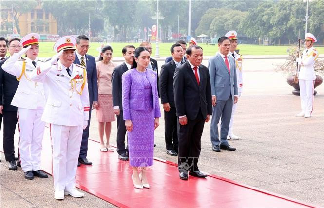 | Thủ tướng Vương quốc Thái Lan Paetongtarn Shinawatra đến đặt vòng hoa và vào Lăng viếng Chủ tịch Hồ Chí Minh. (Ảnh: Phạm Kiên/TTXVN) |